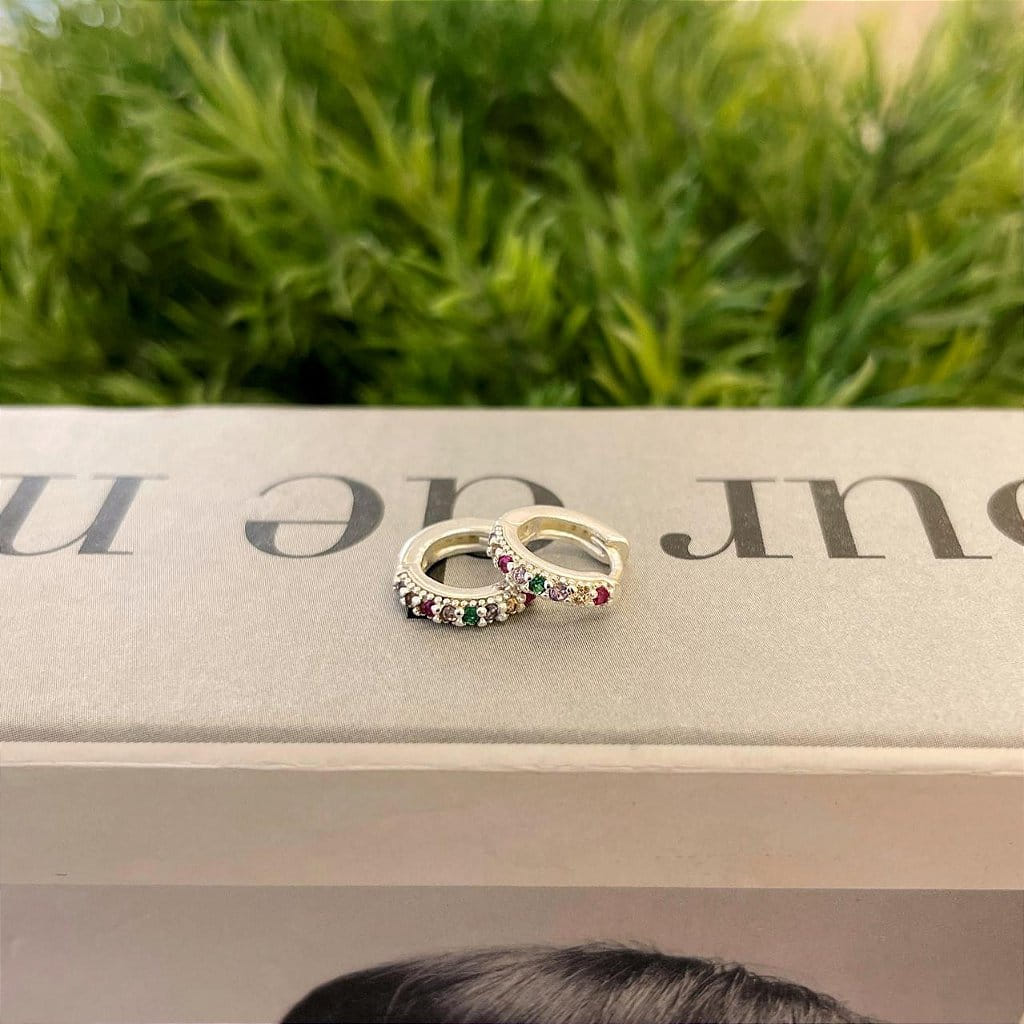 Brinco de Argola 1 Fio Cravejado Slim Rainbow P Folheado a prata 925