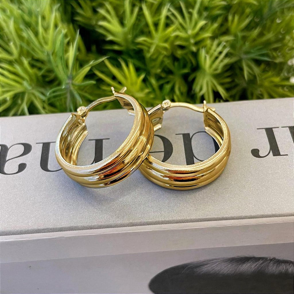 Brinco de Argola Canaletas Lisas Folheado a ouro 18K