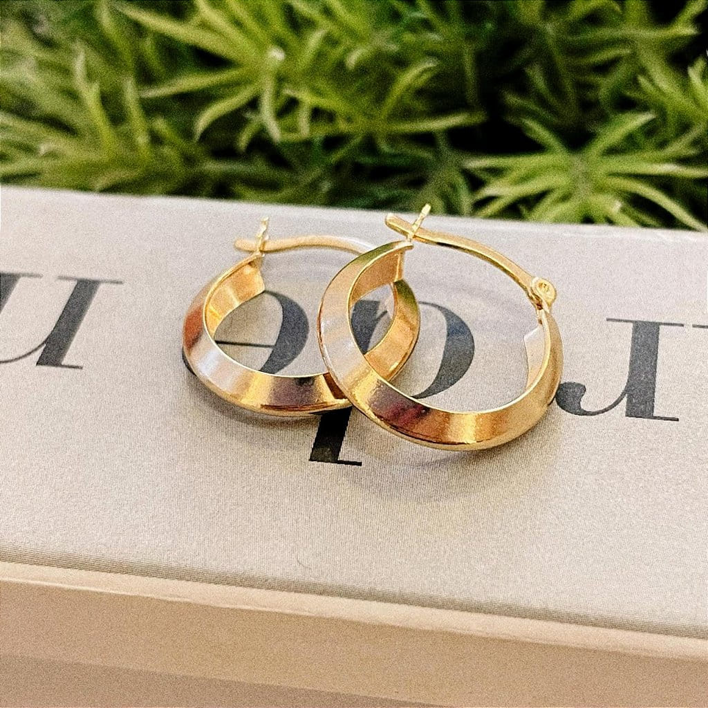Brinco de Argola Canoa Fecho Italiano Folheado a ouro 18K