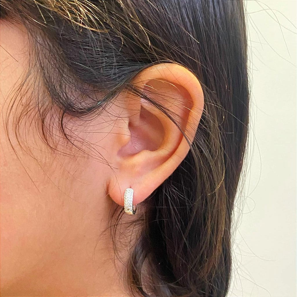 Brinco de Argola Cravejada 3 Fios G Folheado a prata 925