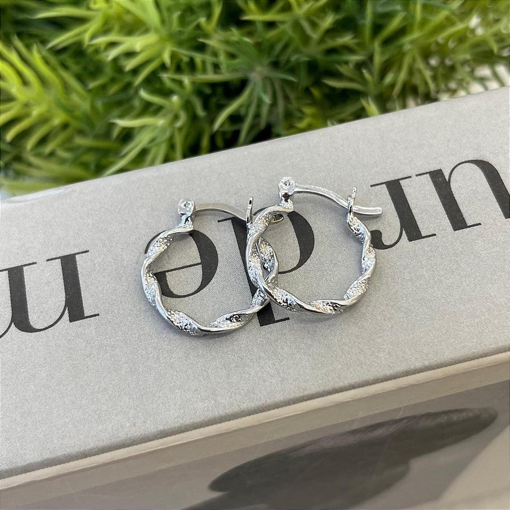 Brinco de Argola Fio Trançado Liso e Granitado Steel