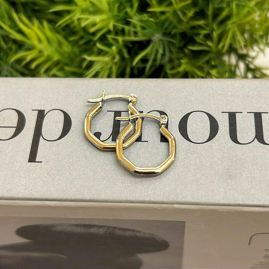 Brinco de Argola Hexagonal Fecho Italiano Folheado a ouro 18K