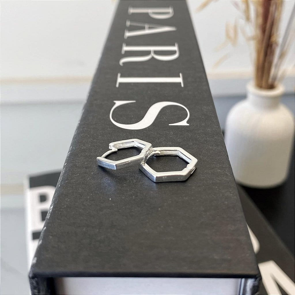 Brinco de Argola Hexagonal Lisa G Folheado a prata 925
