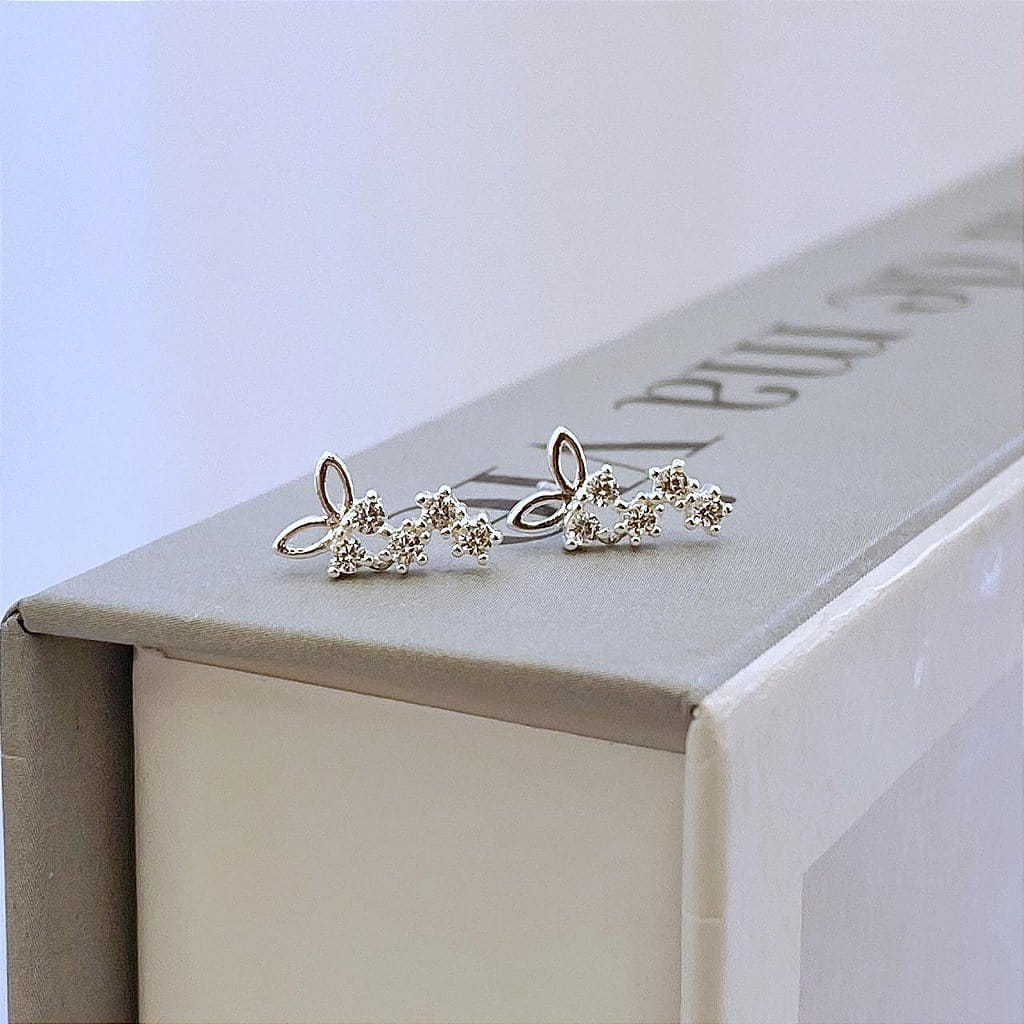 Brinco de Borboleta e Rastro Cravejado Folheado a prata 925