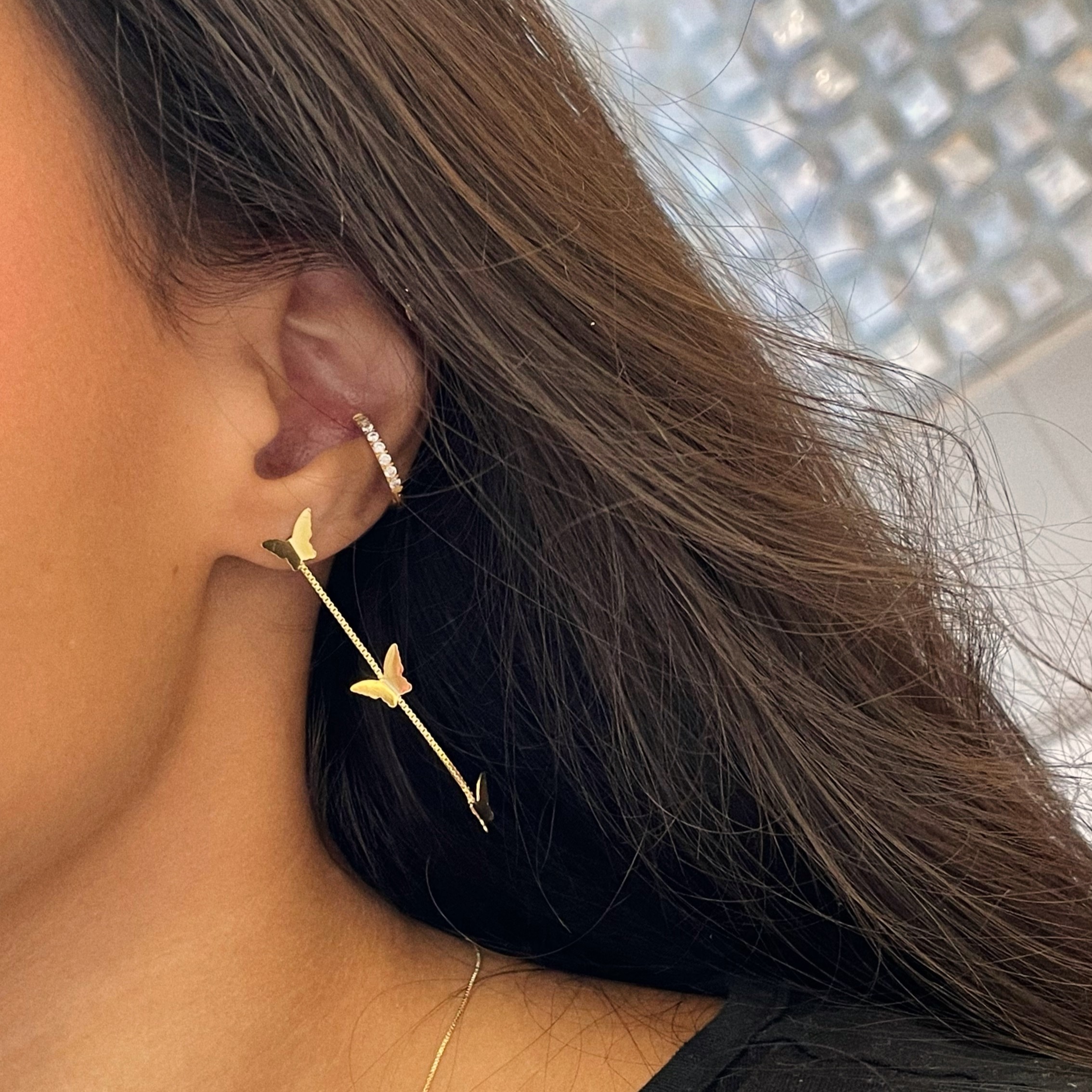 Brinco de Cascata Borboletas Lisas Folheado a ouro 18K