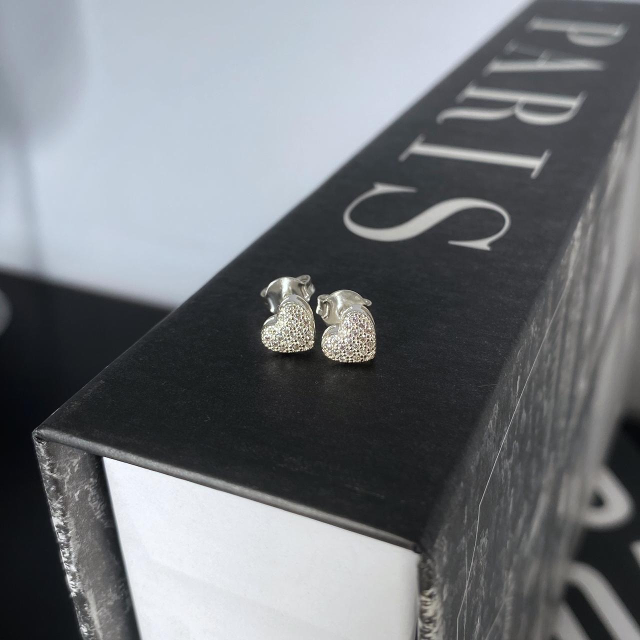 Brinco de Coração Cravejado Grande Pavê Galeria Folheado a prata 925