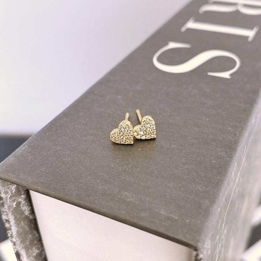 Brinco de Coração Pavê Cravejado Cristal Pequeno Folheado a ouro 18K