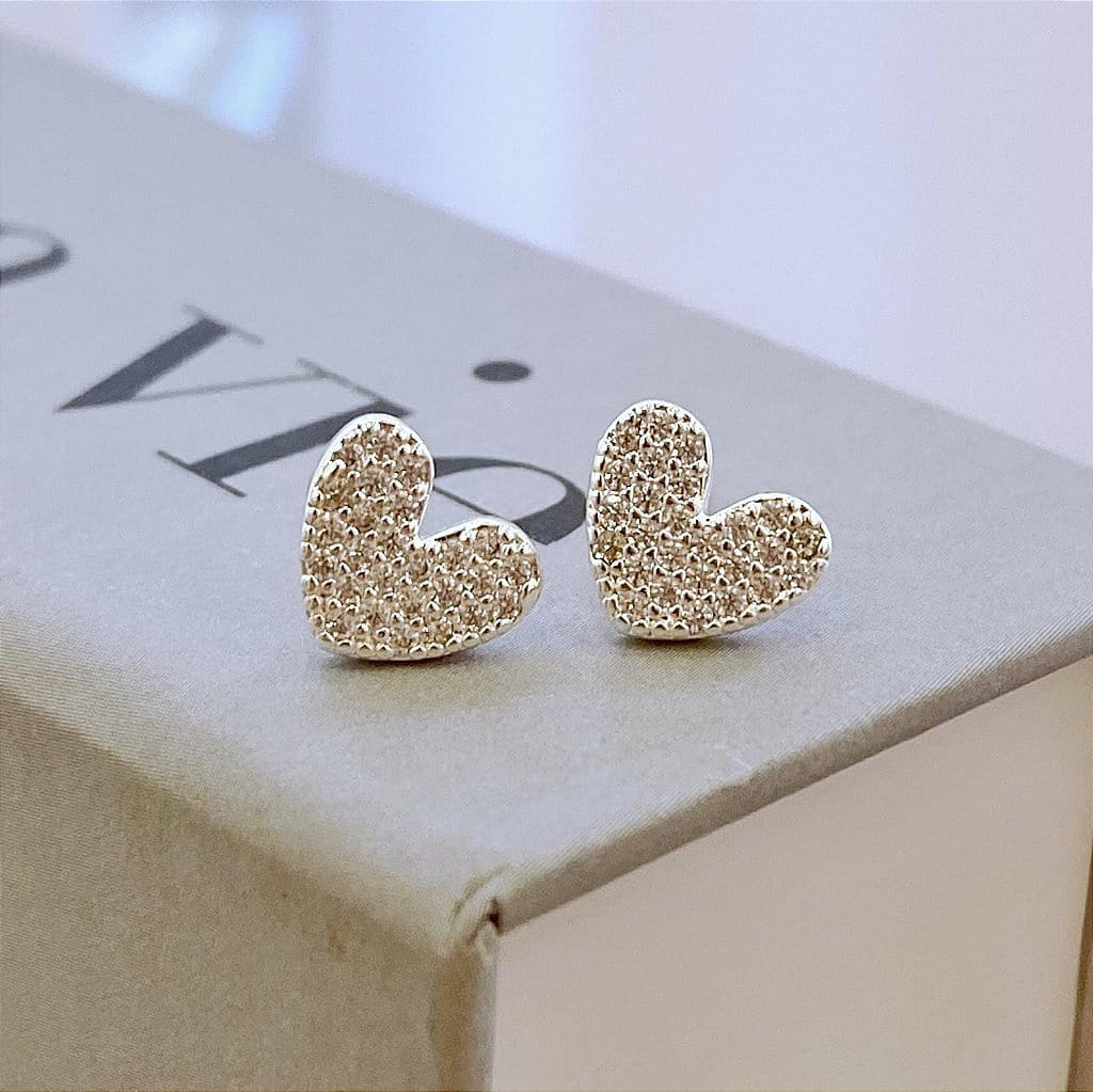 Brinco de Coraçao Pave Cravejado Folheado a Prata 925