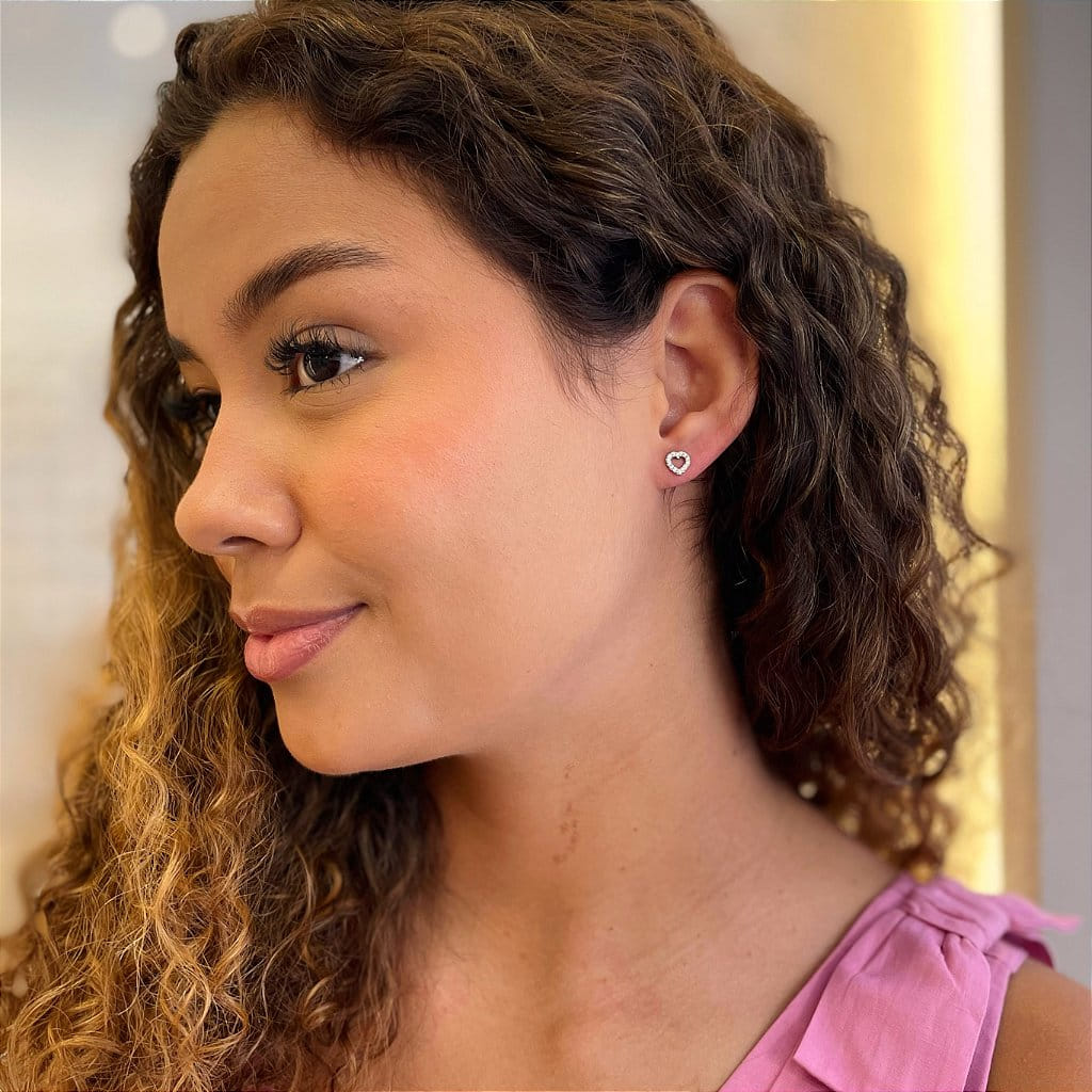 Brinco de Coração Vazado Cravejado Steel
