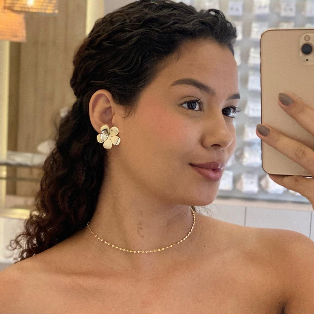 Brinco de Flor Lisa Pétalas Abauladas Folheado a ouro 18K
