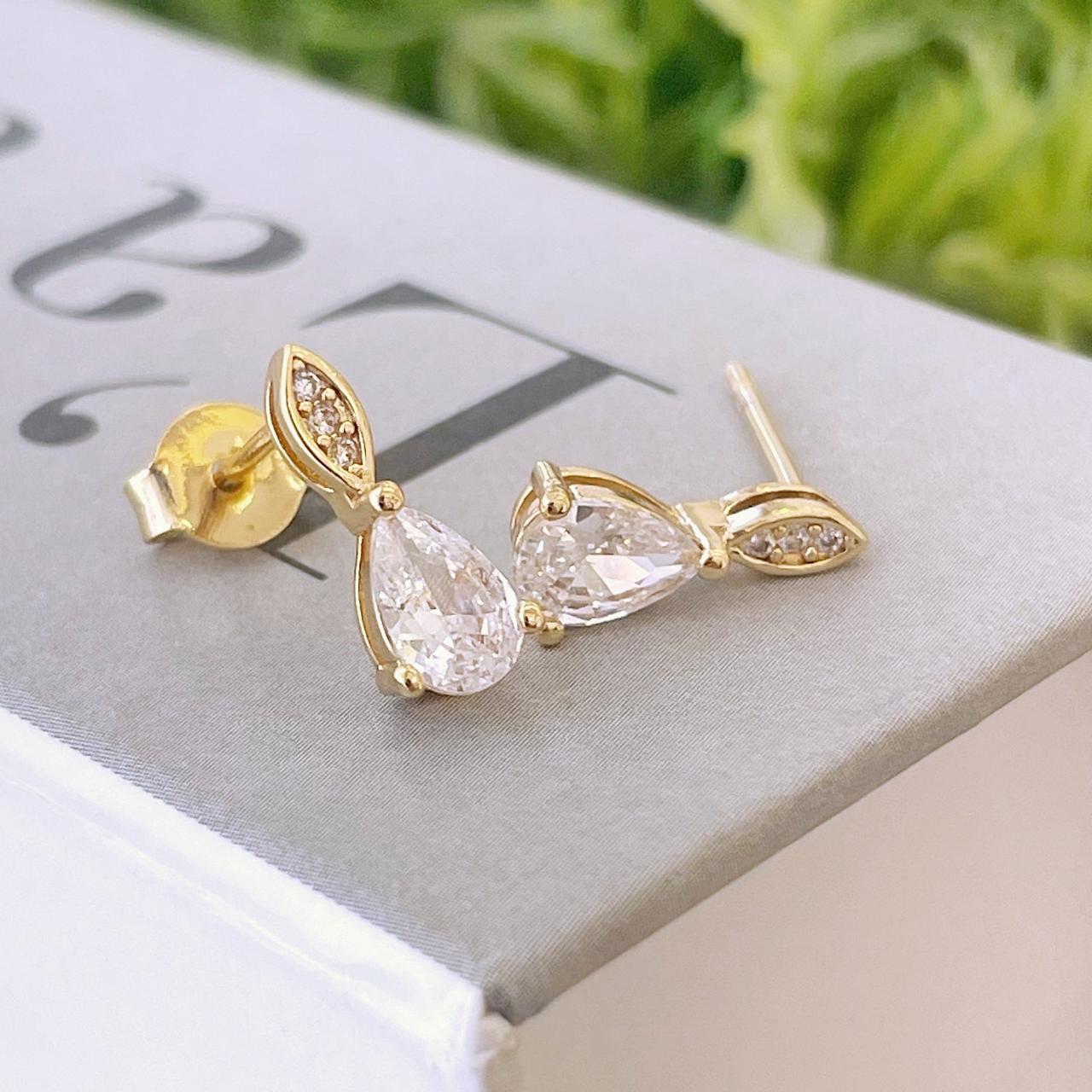 Brinco de Gota Cristal com Pendente Cravejado Folheado a ouro 18K