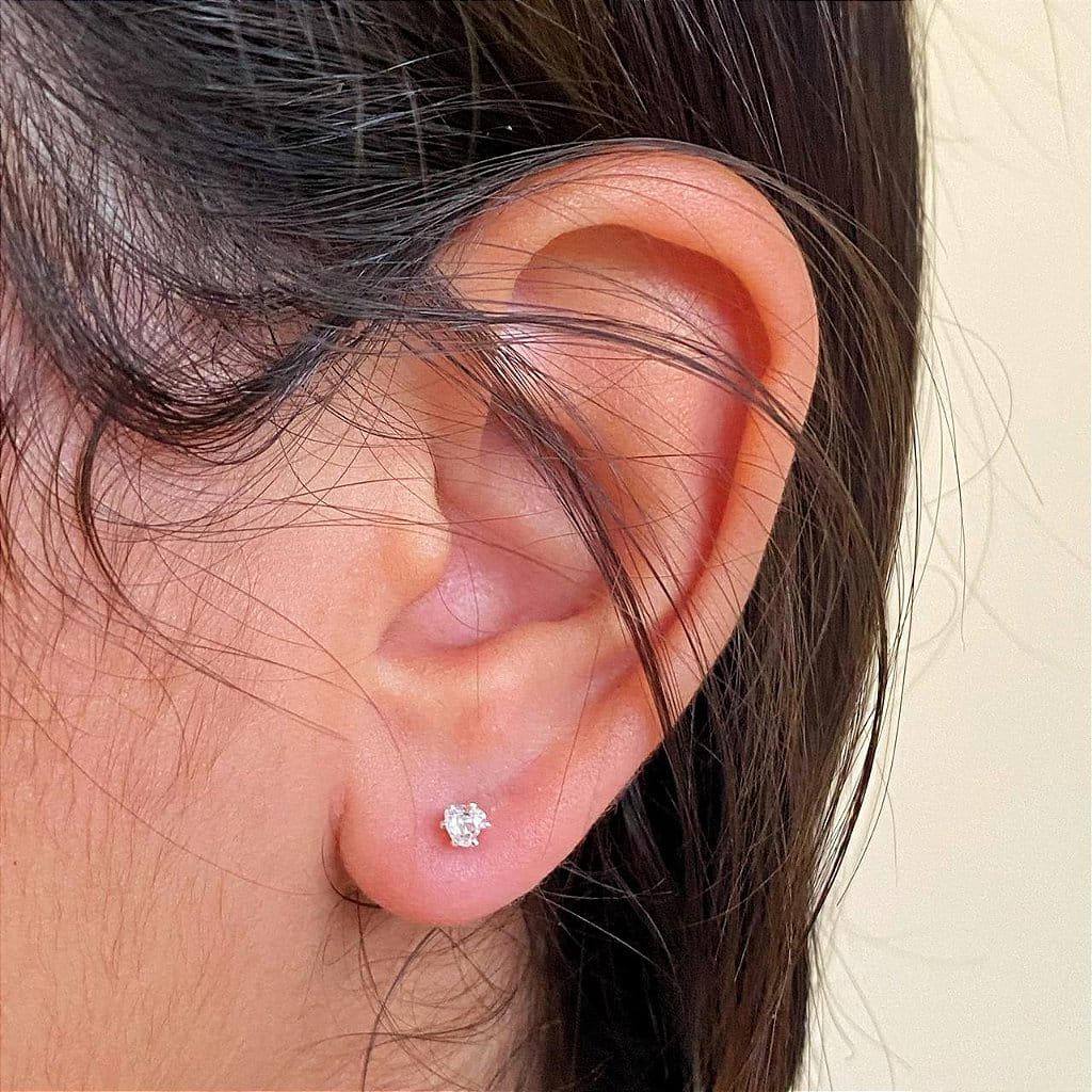 Brinco de Ponto de Luz Coração Cristal P Folheado a prata 925