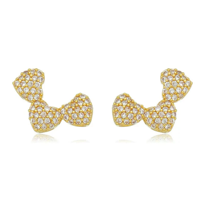 Brinco Earcuff 3 Corações Cravejados Abaulados Folheado a Ouro 18K