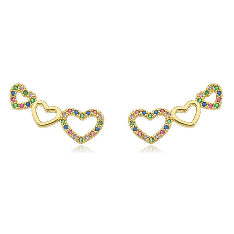 Brinco Earcuff Coração Vazado Rainbow Folheado a Ouro 18K