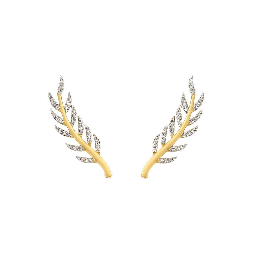 Brinco Earcuff Folhas Zirconias Folheado a Ouro 18K