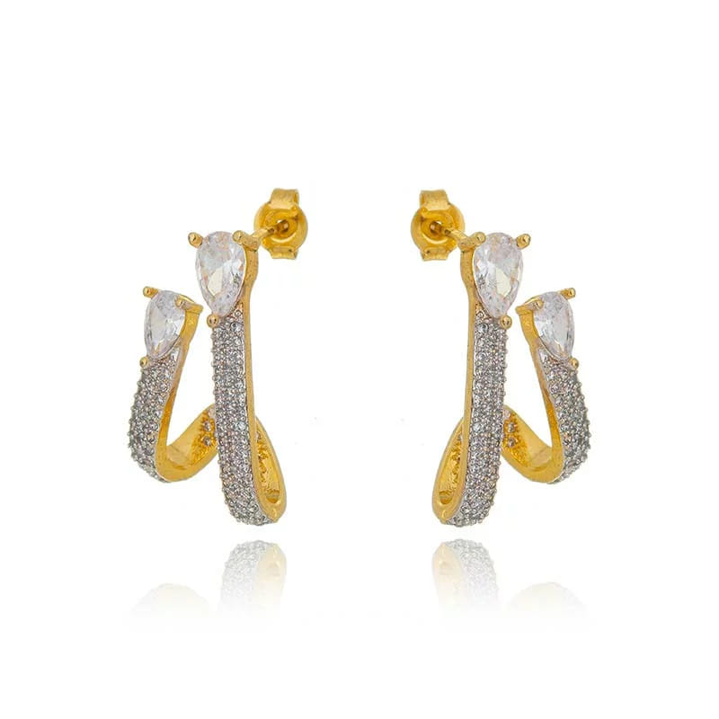 Brinco Earcuff Gotas Cravejado Folheado a Ouro 18K