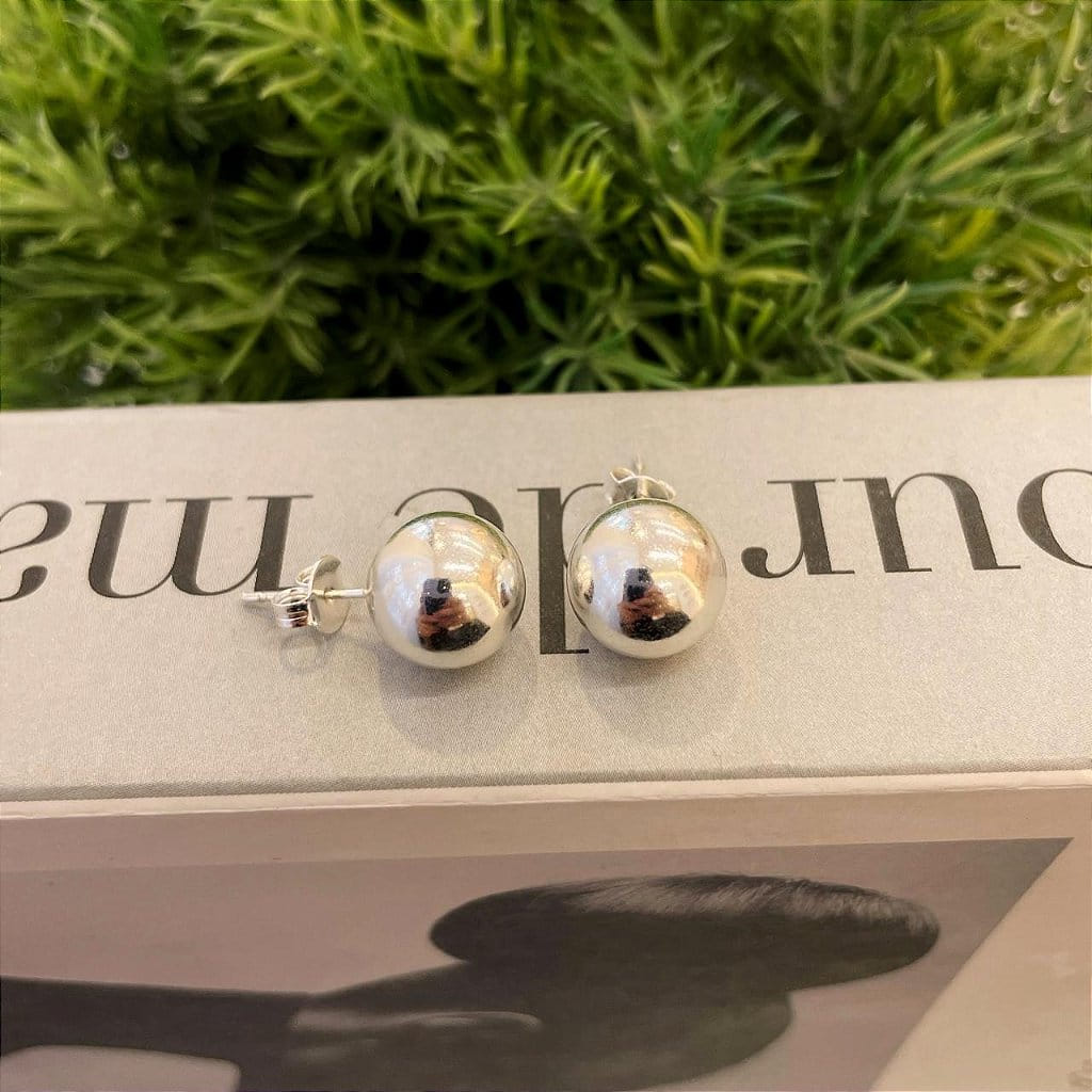 Brinco Esfera Solitária 12 mm Folheado a prata 925
