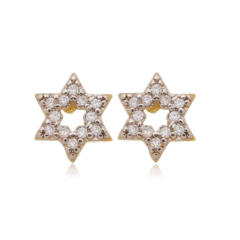 Brinco Estrela Vazado Cravejado Branca Folheado a Ouro 18K