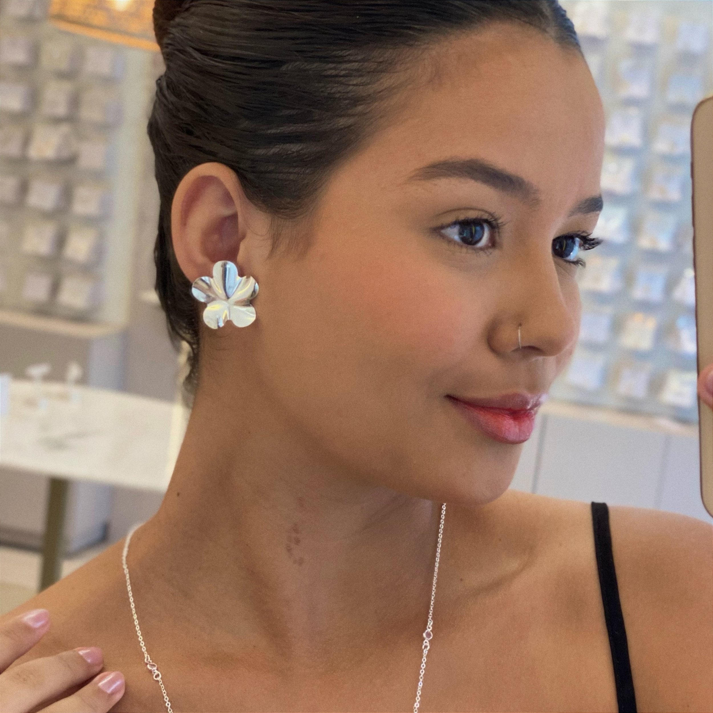 Brinco Flor Orgânica Lisa Folheado a prata 925