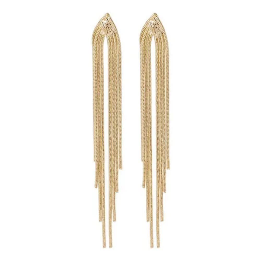 Brinco Franja Degradê Fios Rabo De Rato Folheado a Ouro 18K