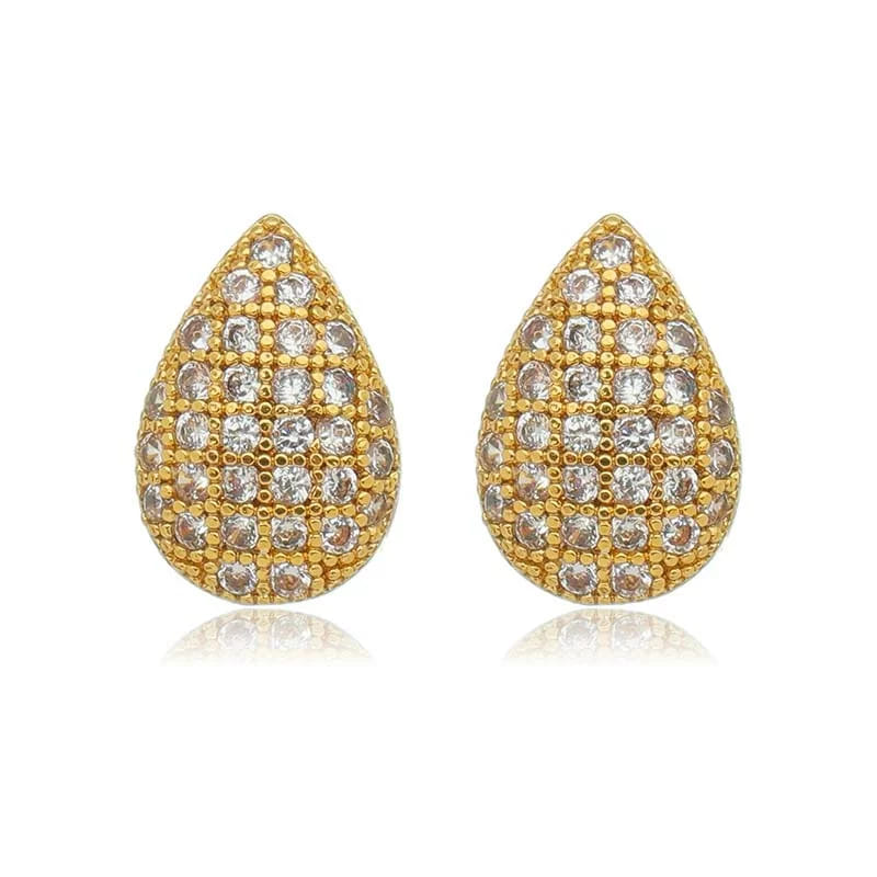 Brinco Gota Abaulada Cravejado Folheado a Ouro 18K