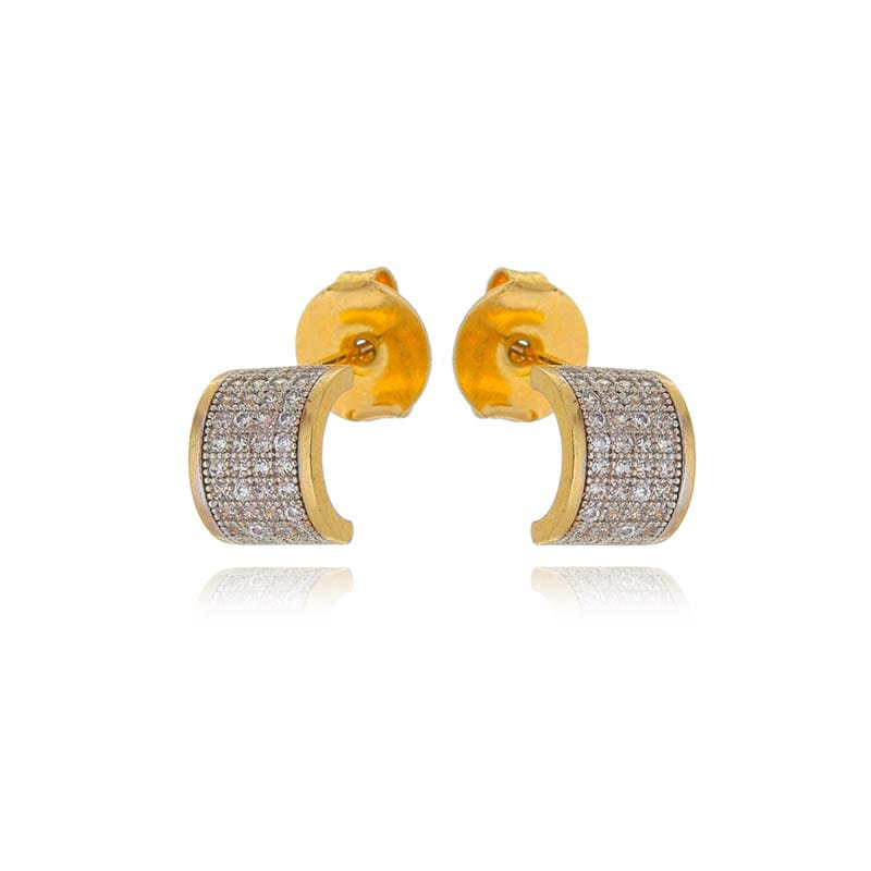 Brinco Meia Argola 4 Fios Cravejados Folheado a Ouro 18K