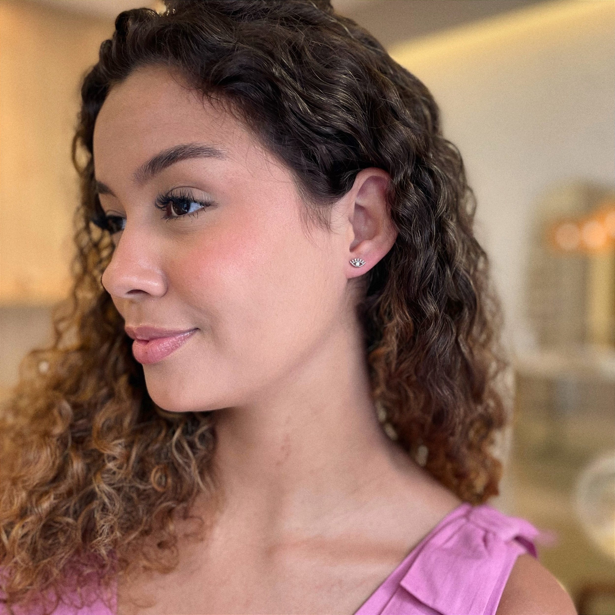 Brinco Olho Grego Delicado Zircônia Central Steel