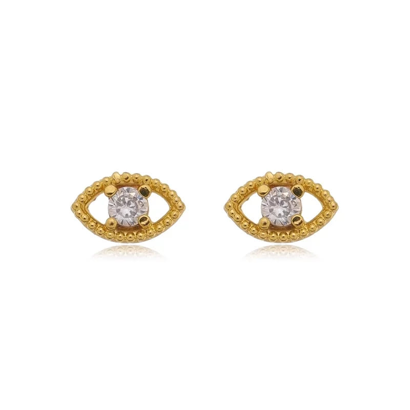 Brinco Olho Grego Zirconias Médio Folheado a Ouro 18K