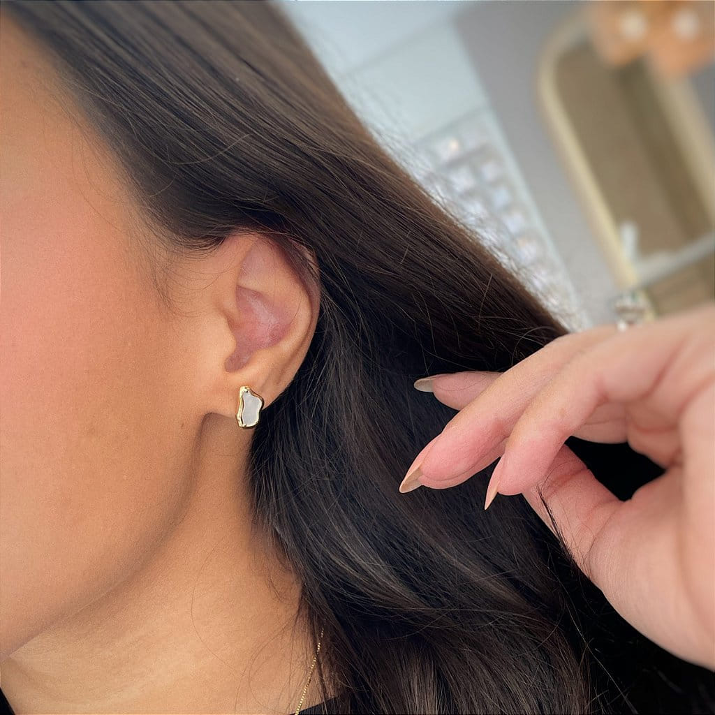 Brinco Orgânico Resina Madrepérola Folheado a ouro 18K