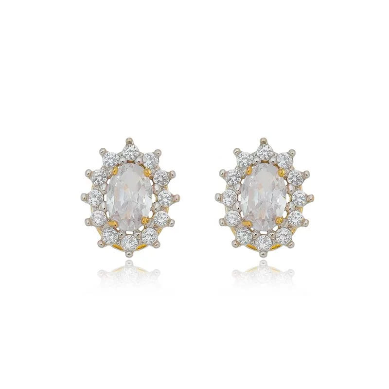 Brinco Oval Borda Cravejado Folheado a Ouro 18K
