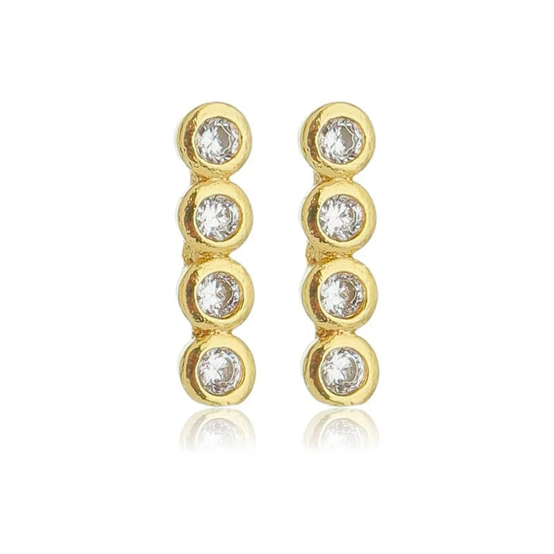 Brinco Palito Zircônias Redondas Folheado a Ouro 18K