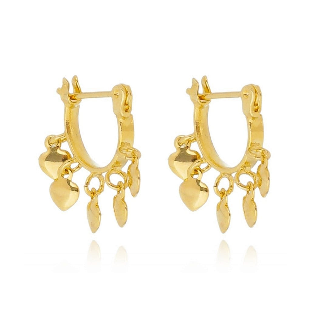 Brinco Pandeiro Pingentes Corações Lisos Folheado a Ouro 18K