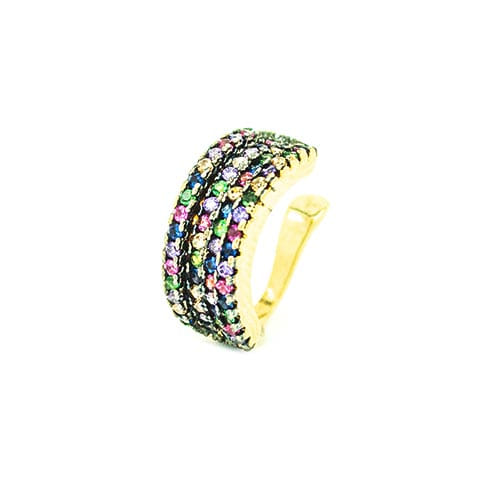 Brinco Piercing Pressao Zircônias Cores Folheado a Ouro 18K