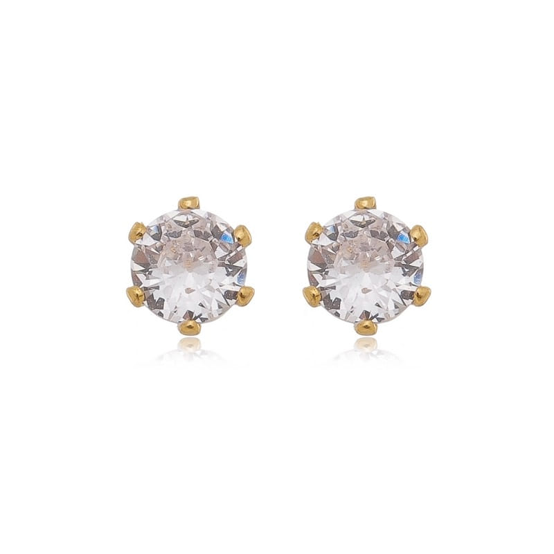 Brinco Ponto De Luz Cristal Grande Folheado a Ouro 18K