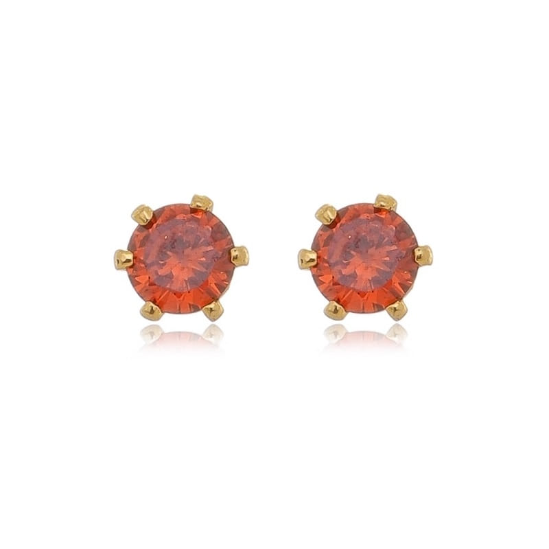 Brinco Ponto De Luz Pequeno Vermelho Folheado a Ouro 18K
