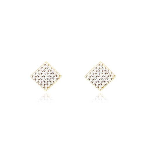 Brinco Quadrado Pavê Folheado a Ouro 18K