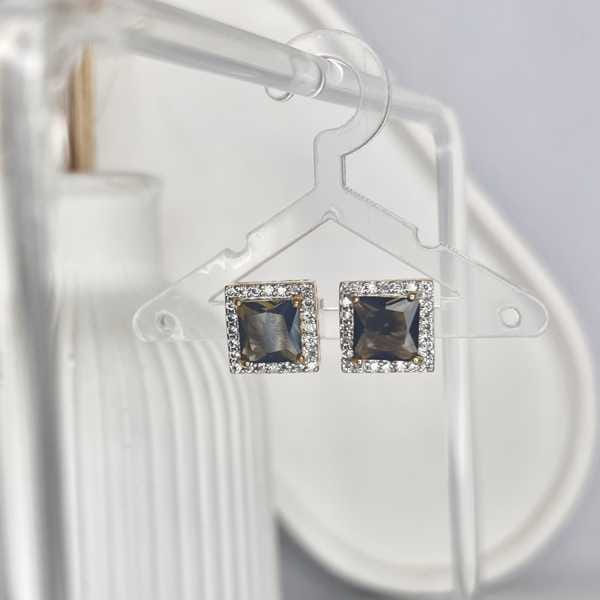 Brinco Quadrado Pedra Lavanda E Borda Cravejado Folheado a Ouro 18K