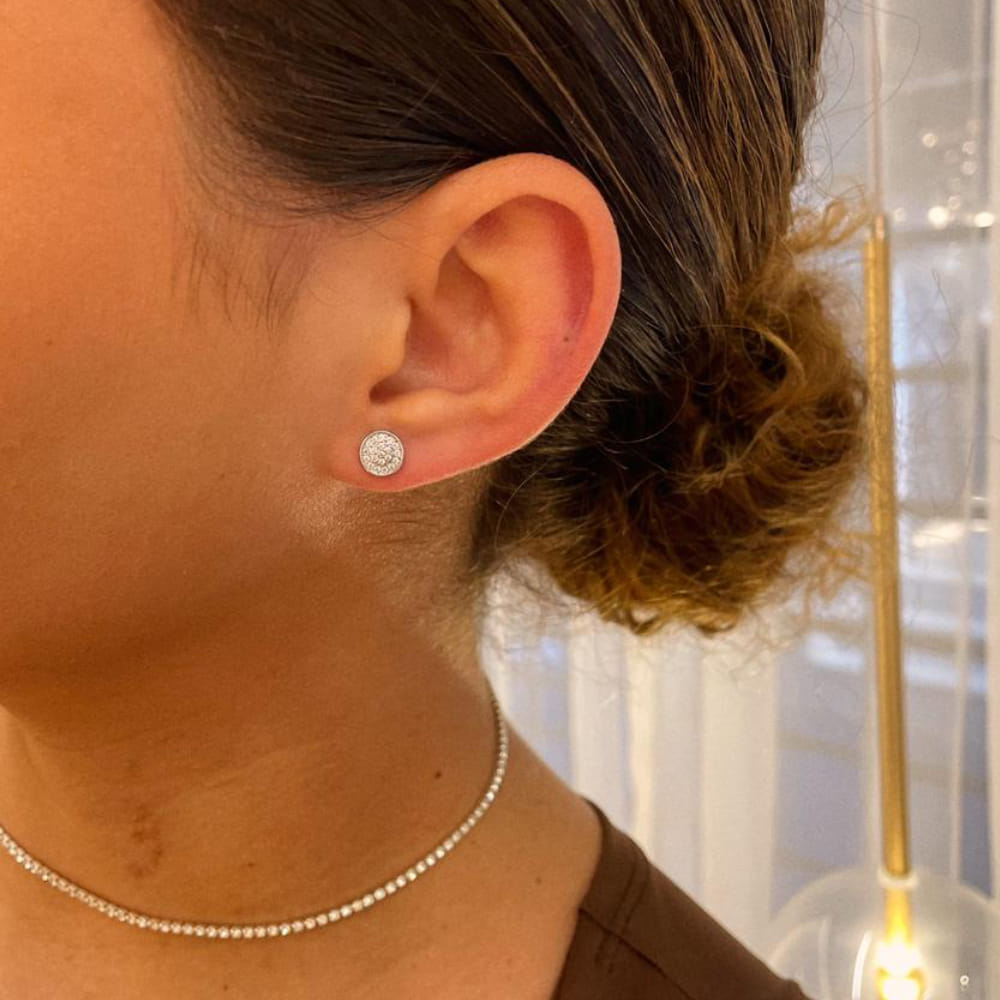 O formato redondo com zircônias cravejadas em estilo pavê cria um efeito de brilho uniforme e delicado, trazendo destaque ao rosto sem exageros. O tamanho médio garante presença elegante, sendo ideal tanto para o dia a dia quanto para ocasiões especiais.