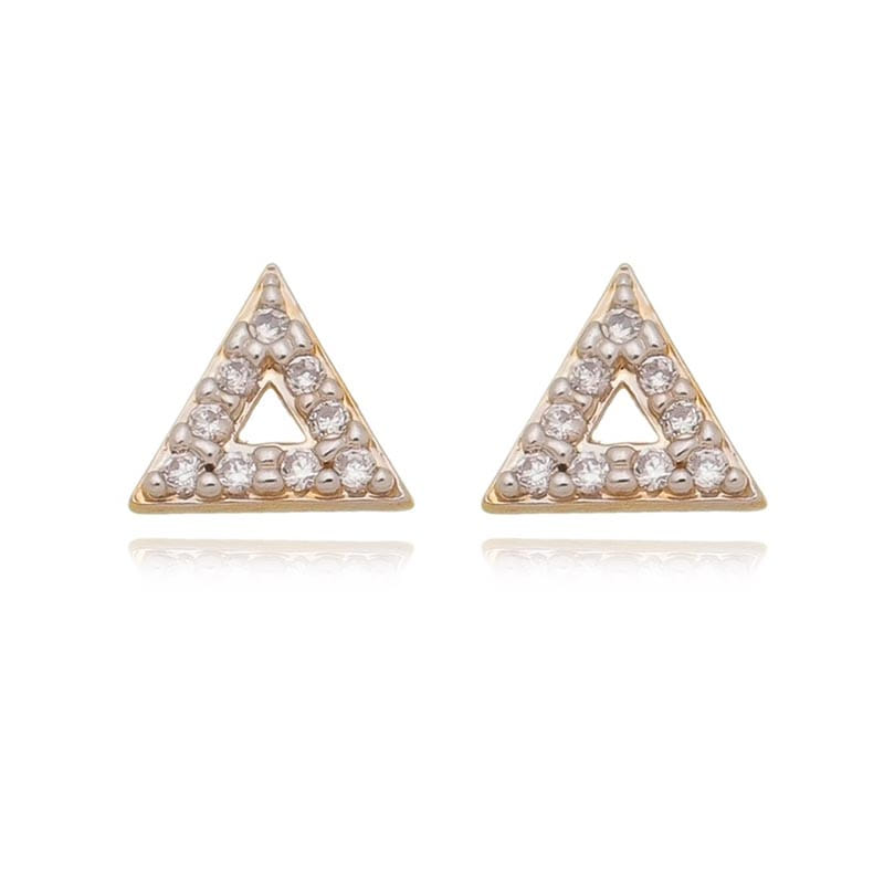 Brinco Triangulo Cravejado Vazado Folheado a Ouro 18K