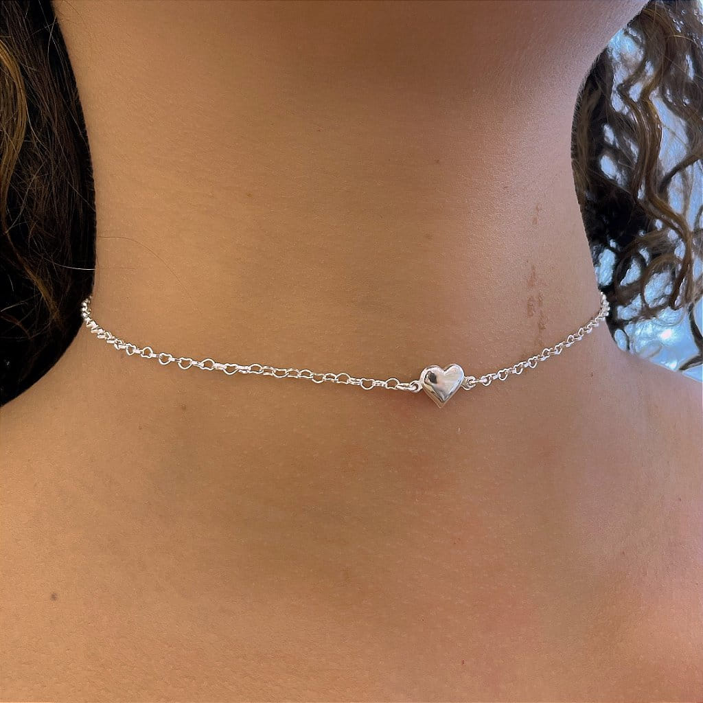 Choker Correntinha Coração Pingente Coração Liso Meio Folheado a Prata 925