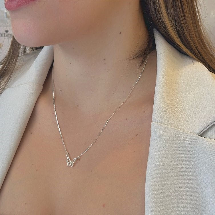 Colar Borboleta Cravejada Folheado a Prata 925