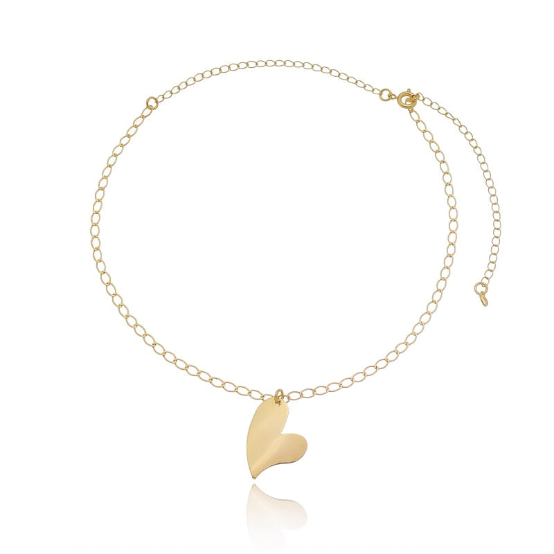 Colar Choker Correntinha Pingente Coração Desenhado Folheado a Ouro 18K