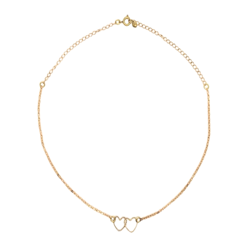 Colar Choker Elo Veneziano Aberto Dois Corações Entrelaçados Folheado a Ouro 18k