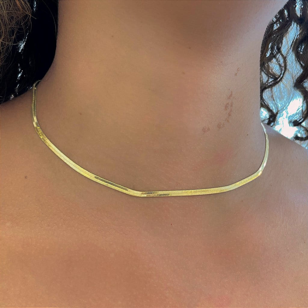 Colar Choker Fita Heringbone Folheado a Ouro 18k