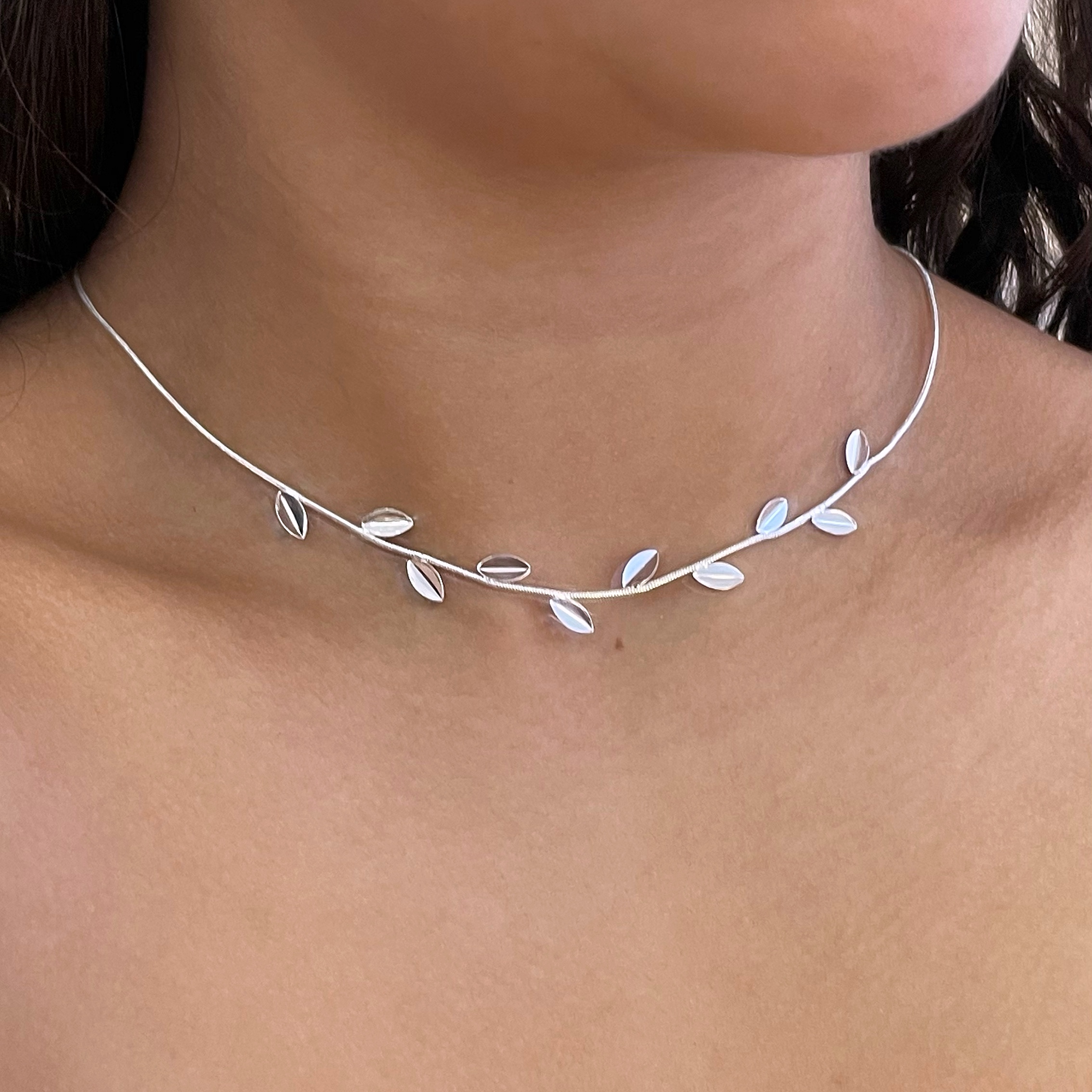 Colar Choker Rabo de Rato e Folhas Lisas Folheado a prata 925