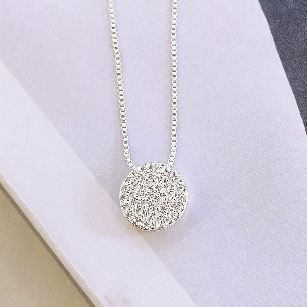 Colar Chuveiro Cristal Cravejado Borda Trabalhada Folheado a Prata 925