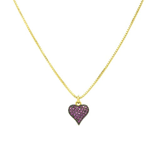 Colar Coração Desenhado Cravejado Folheado a Ouro 18K