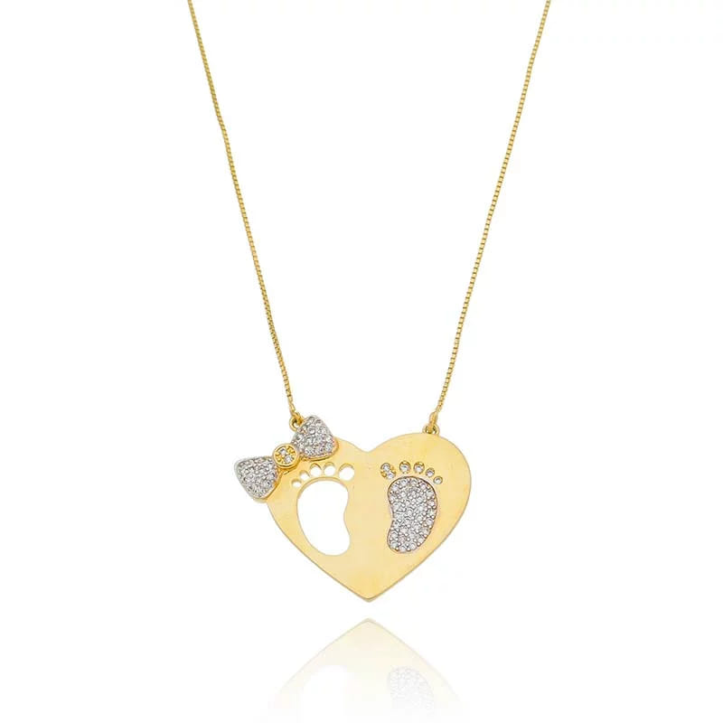 Colar Coração Laco E Pes Folheado a Ouro 18K