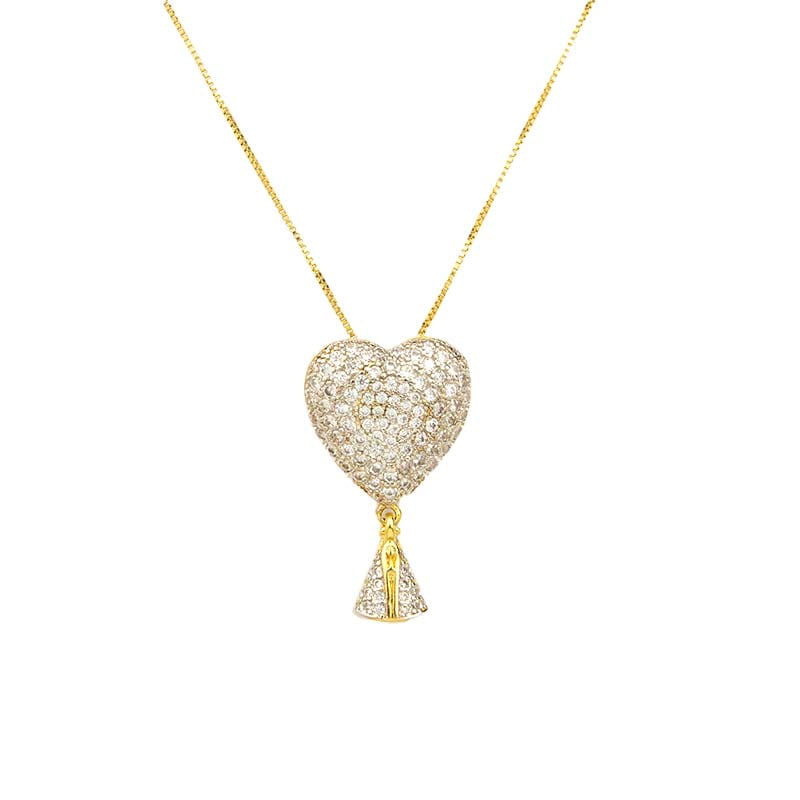 Colar Coração Nossa Senhora Aparecida Folheado a Ouro 18K