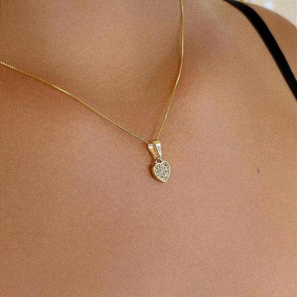 Colar Coração Pavê Cravejado Folheado a ouro 18K
